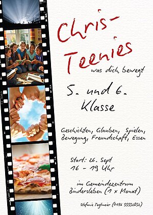 Ein Angebot für alle, die in der 5. und 6. Klasse sind - zu 'alt' für die Christenlehre, zu 'jung' für den Konfi-Unterricht, und dennoch habt ihr ganz eigene Wünsche und Ideen.